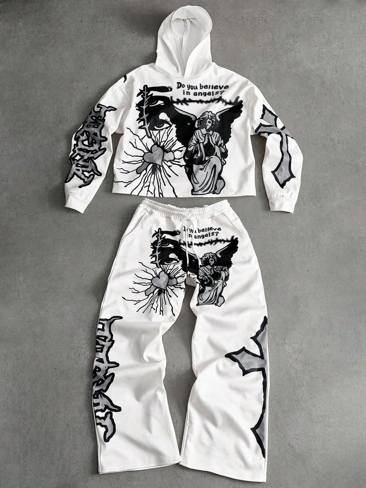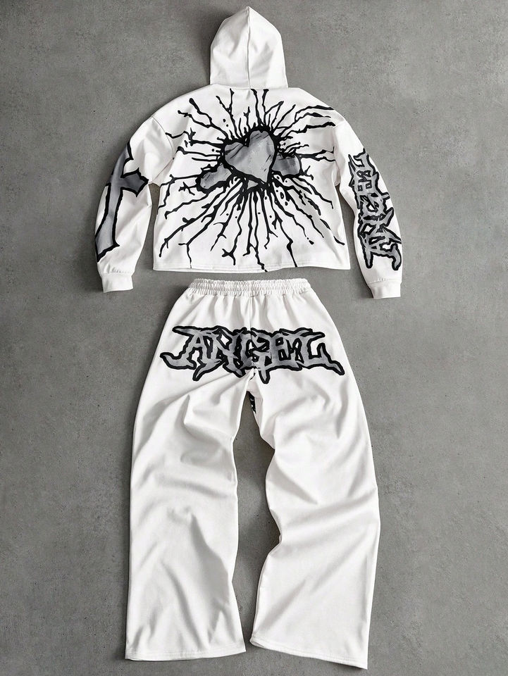 Ensemble de survêtement 2 pièces pour homme, 100 % coton, imprimé écoresponsable, avec fermeture éclair intégrale, idéal pour le sport et le jogging