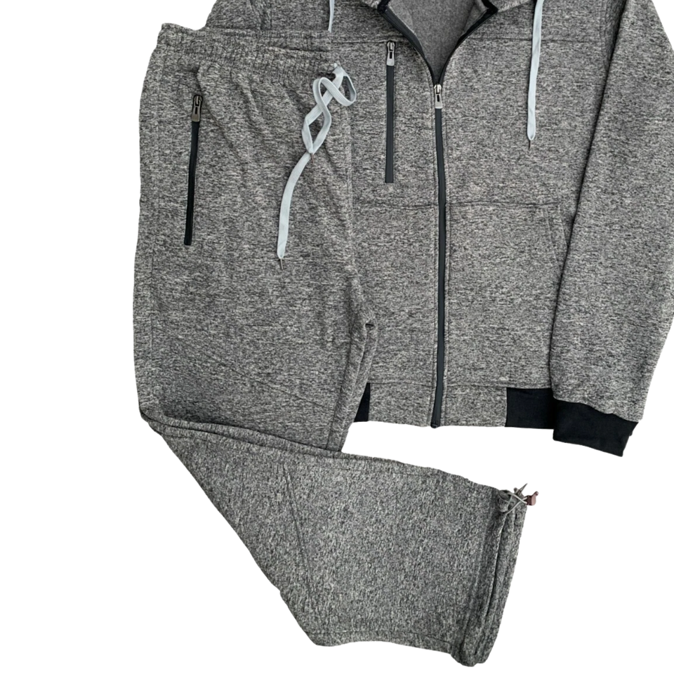 Ensemble de survêtement gris pour homme, sweat à capuche zippé, jogging deux pièces, vêtements de sport, poches zippées, logo personnalisé, vêtements de sport chauds, survêtement en gros