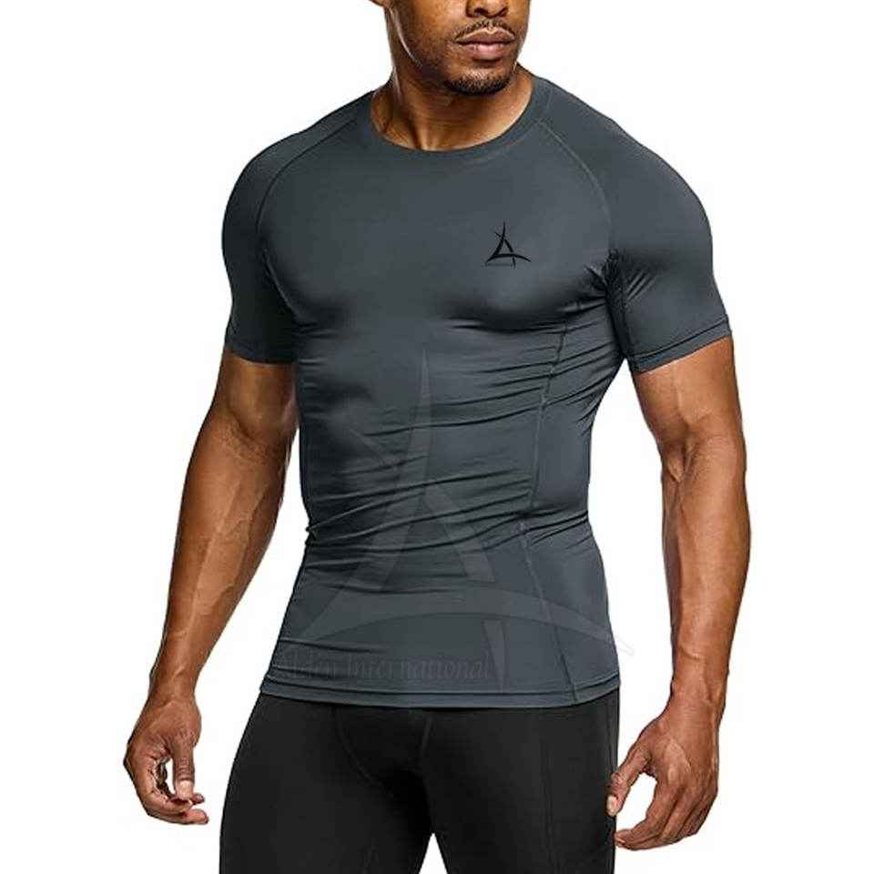 T-shirt de compression pour homme, coupe classique, athlétique, manches courtes, écologique, respirant, en élasthanne/polyester, séchage rapide pour