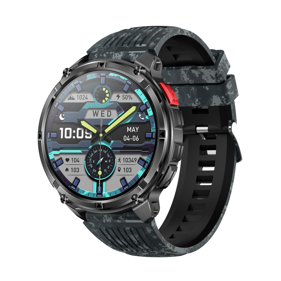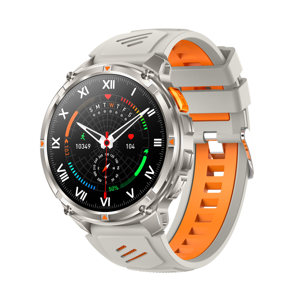 Montre connectée pour homme HT33, écran LED 1,7 pouce, lampe torche, appels Bluetooth, boussole, surveillance de la santé, batterie 1100 mAh, FitCloudPro