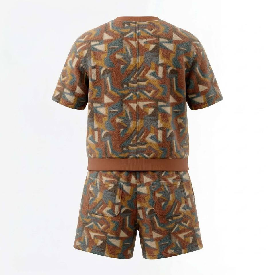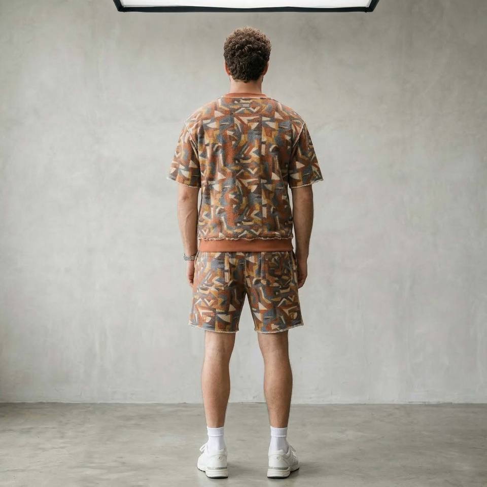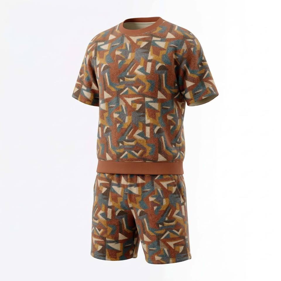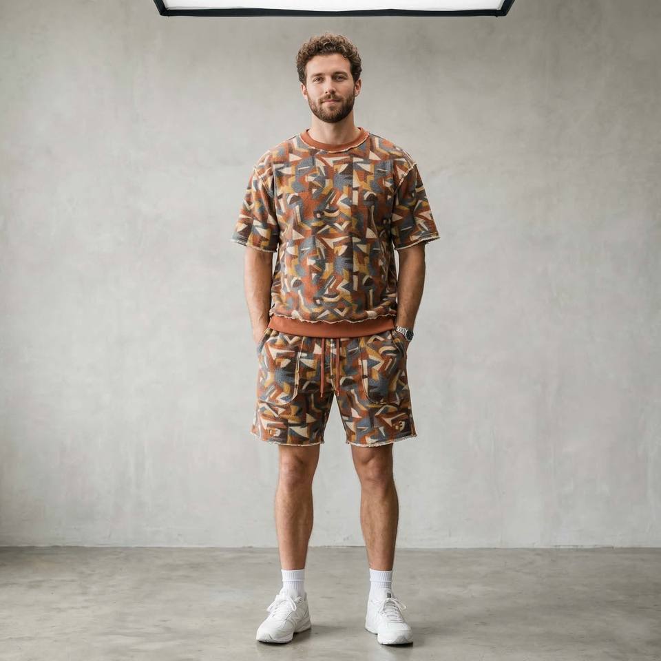 Men Heavyweight Fleece Short Set Earth Tone Crewneck Two Piece Summer Breathable Suit Set
