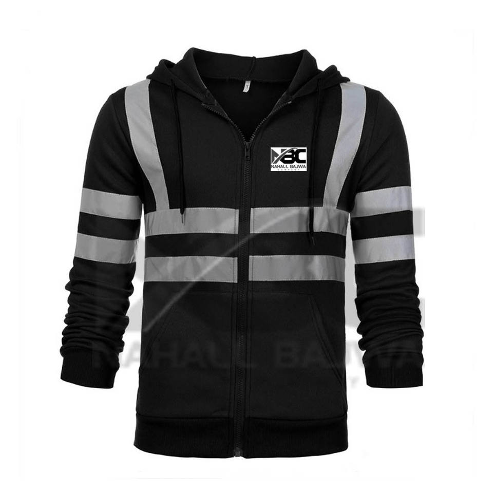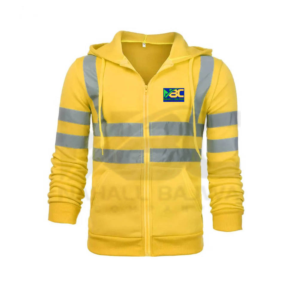Sweat-shirt à capuche en coton pour hommes, avec fermeture éclair, réflecteur haute visibilité, sécurité, travail d'hiver, pour la construction routière