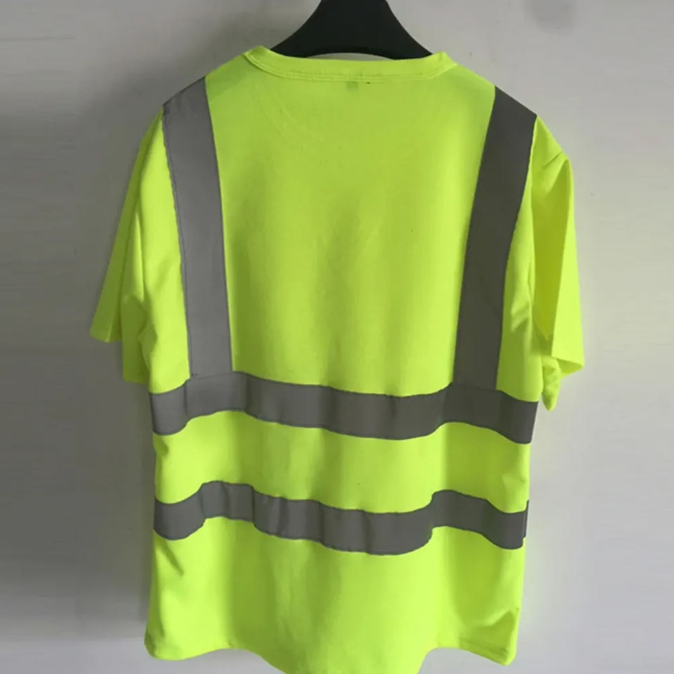 Men Hi Vis Yellow Short Sleeve Shirts Reflective Work Wear Safety Shirt Strip Security Construction High Visibility T Shirt