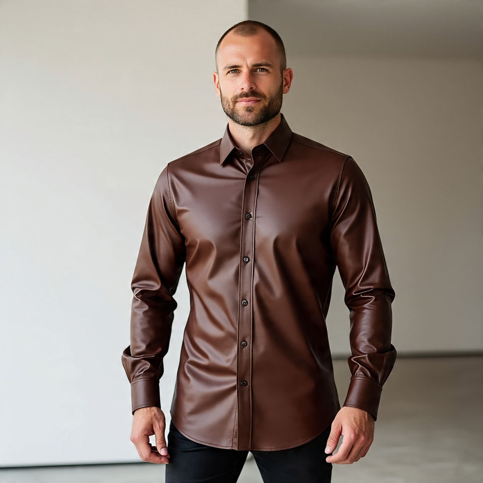 Nom du produit:Chemise en cuir véritable à manches longues pour hommes