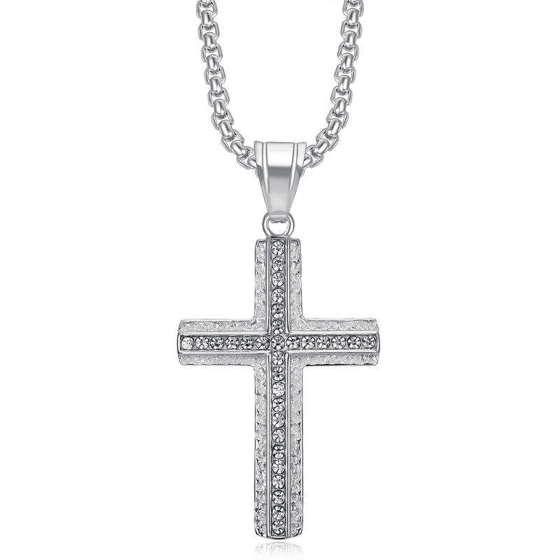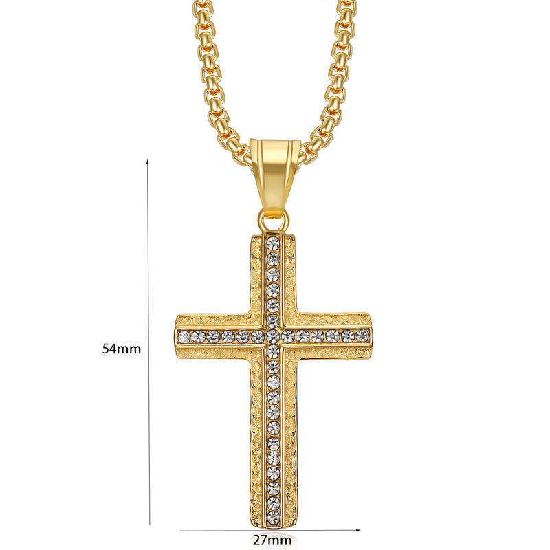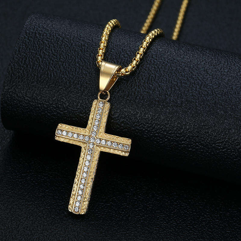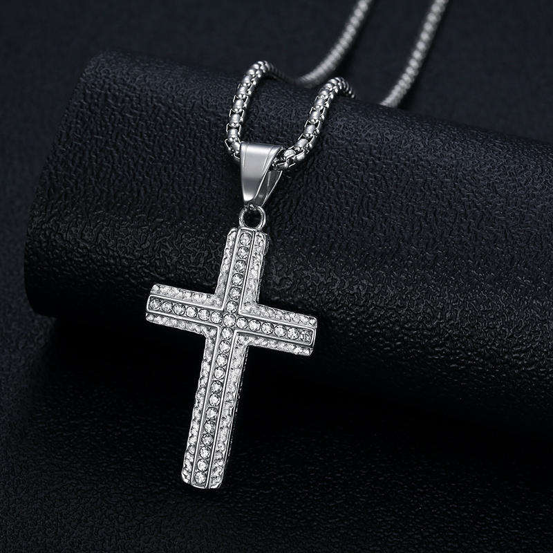 Collier avec pendentif croix catholique hip-hop pour homme, bijoux religieux en acier inoxydable, cadeau chrétien imperméable et résistant au ternissement pour homme