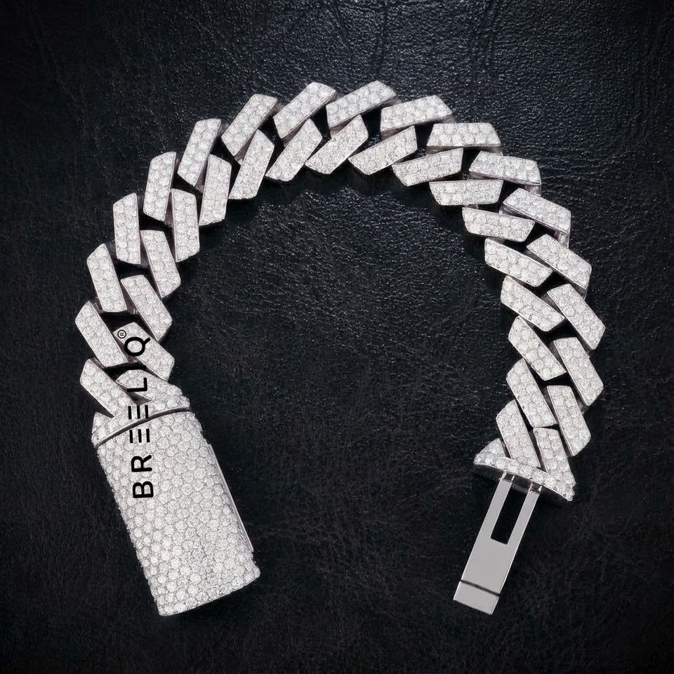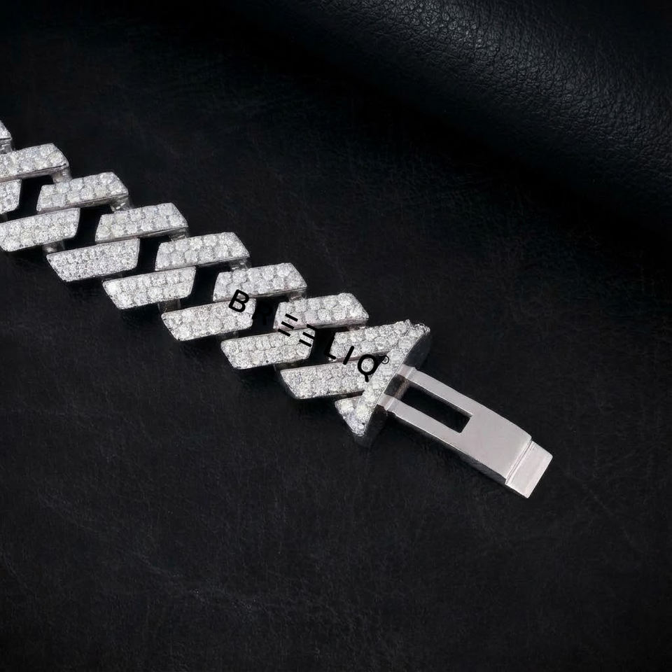 Bracelet cubain à deux rangs de 18 mm pour homme, style hip-hop, en argent sterling 925 avec diamants VVS cultivés en laboratoire, bijoux de luxe