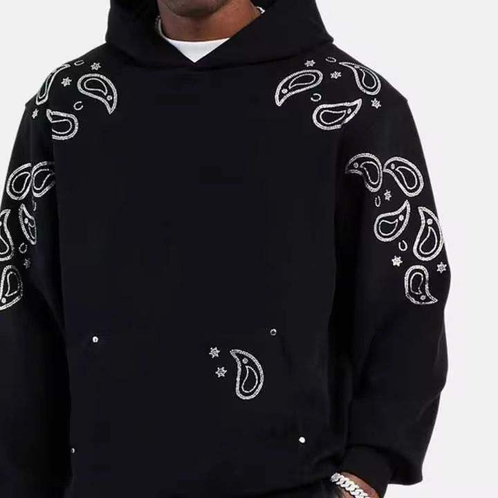 Sweat-shirt à capuche pour homme personnalisé OEM avec strass en cristal, en mélange de coton, impression numérique automne, streetwear