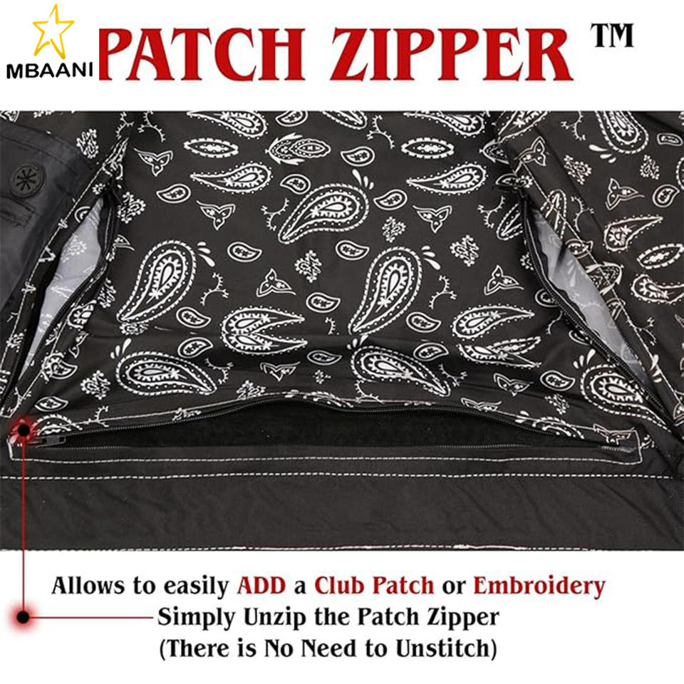Men Leather Club Vest Paisley Lining, Contrast Stitch, Patch Ready Back, Storage Pockets