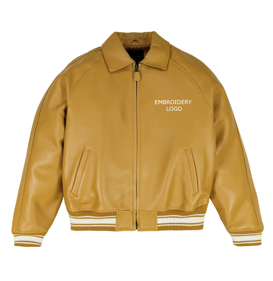 Blouson en cuir pour homme respirant, coupe-vent, écologique, avec logo brodé, style bomber, fermeture éclair, universitaire, grandes tailles, finition denim, décontracté, OEM