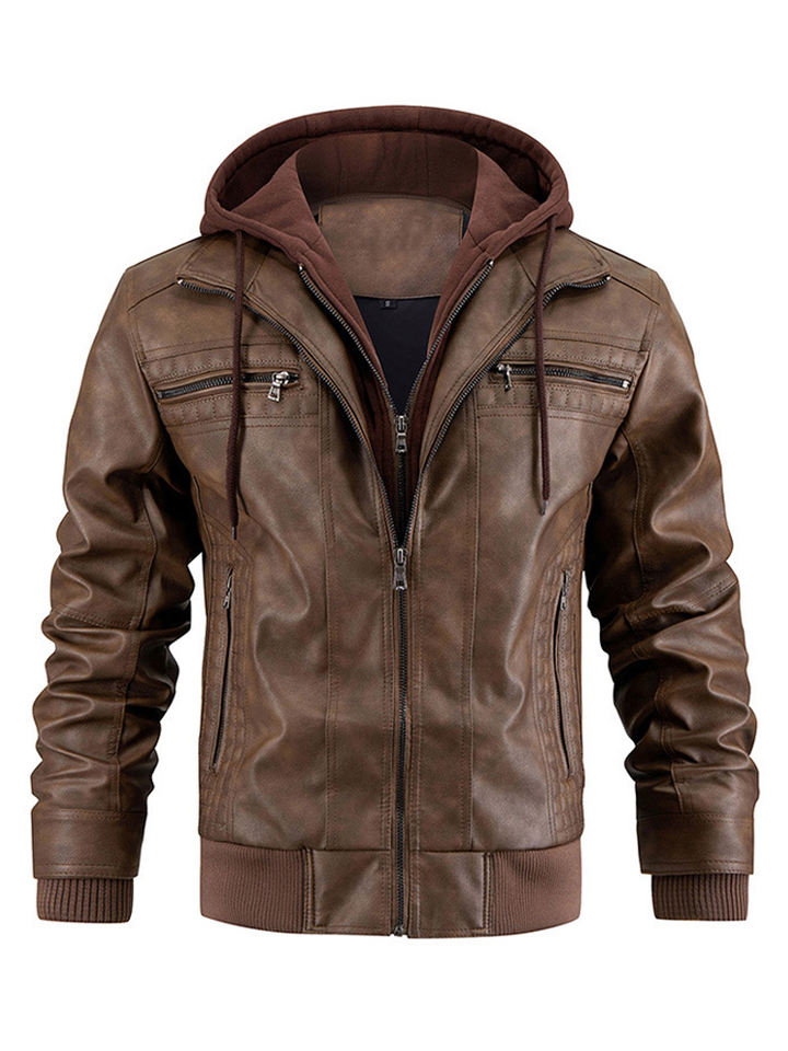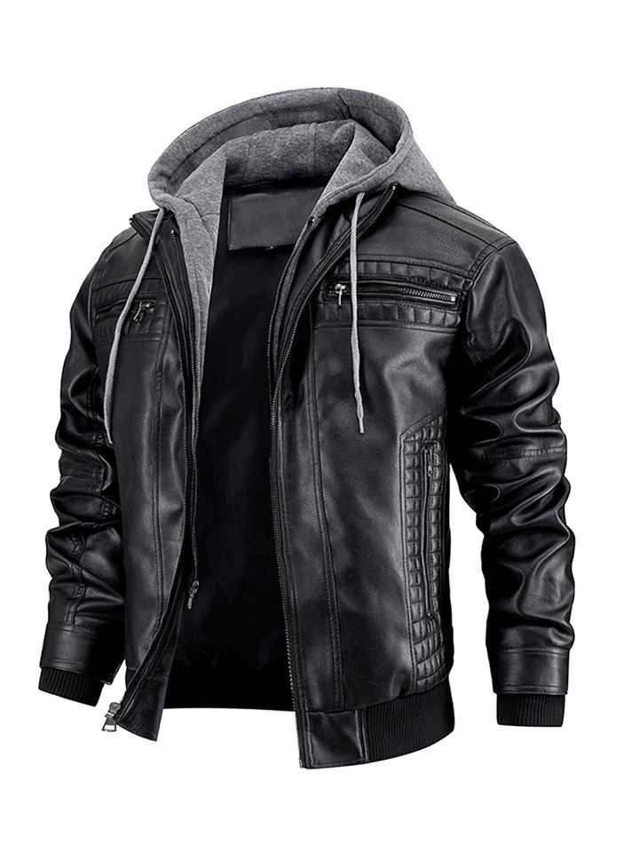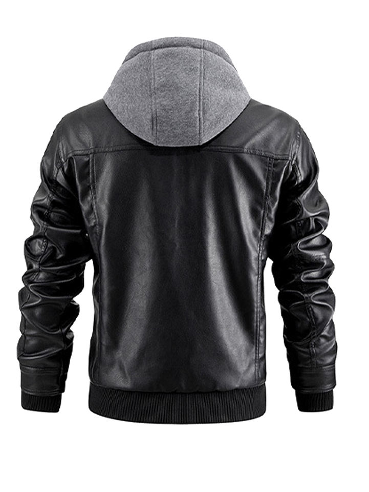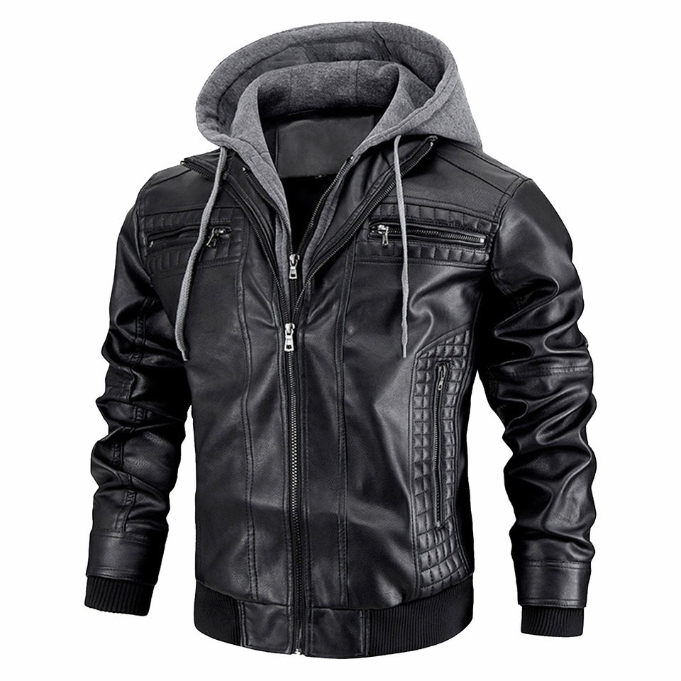 Blouson en cuir pour homme, coupe slim, en PU, style moto, décontracté, coupe-vent, écologique, avec logo frontal, capuche amovible, tailles S-XXXL