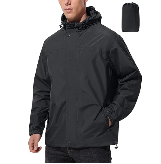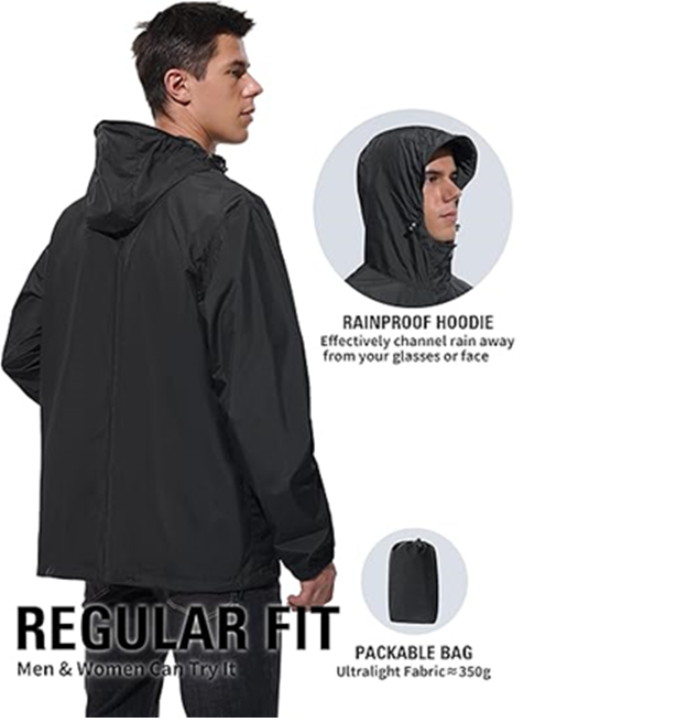 Veste de pluie légère pour homme, coupe-vent imperméable, veste de pluie pliable avec capuche pour le golf, la course à pied, la randonnée, les voyages