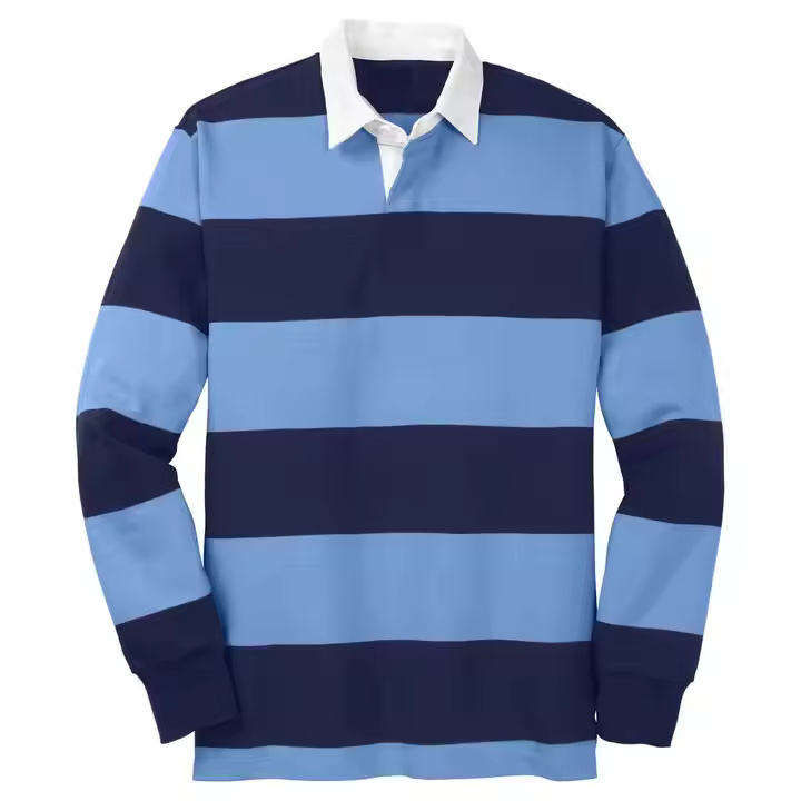 Polo à manches longues pour homme, rayé, en coton, col polo, chemise de sport décontractée, logo personnalisé, streetwear