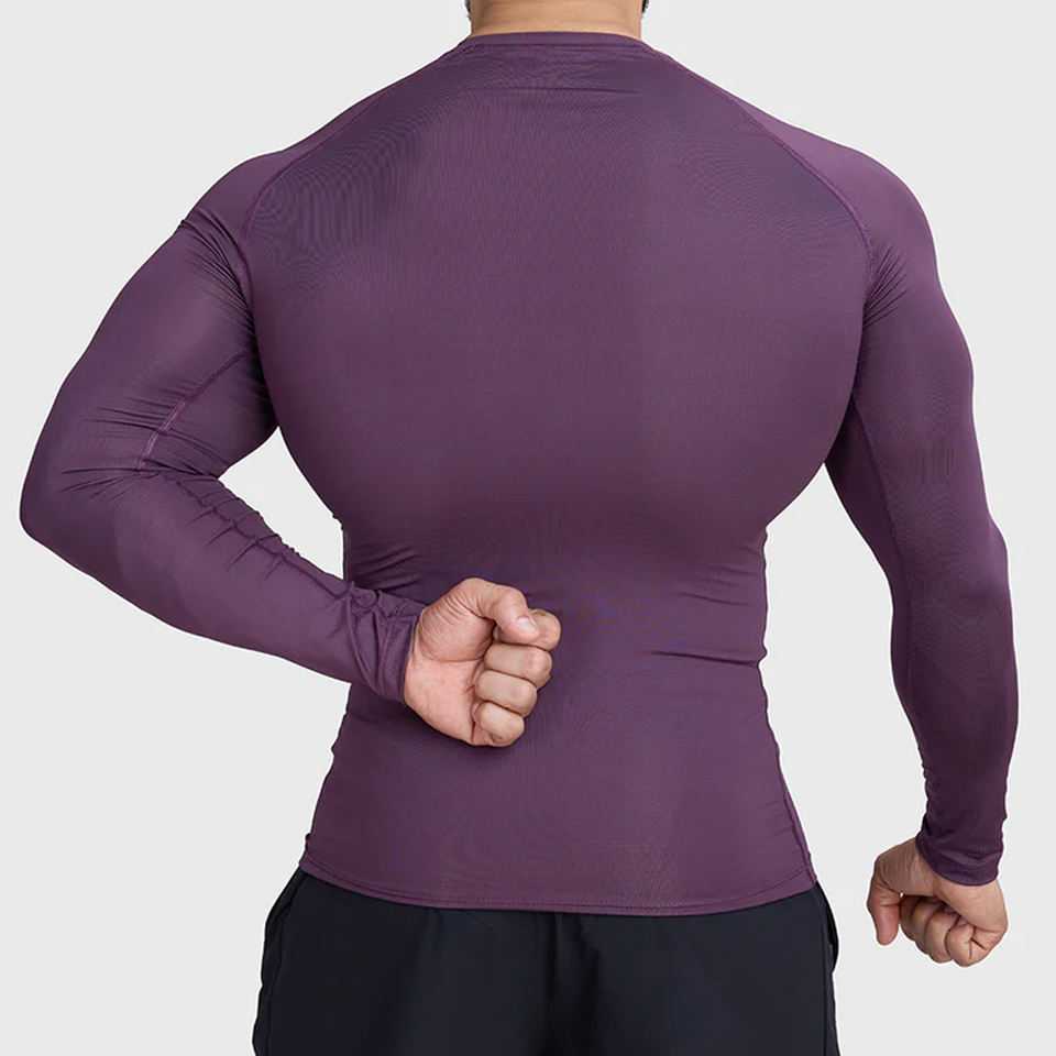 Fabricant et fournisseur en gros de rash guards à manches longues en polyester et spandex pour hommes, avec logo et sublimation.
