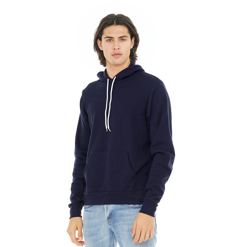 Men Long Sleeved Plaid Hooded Navy Blue Patchwork Color Pullover with Drawstring Hoodies