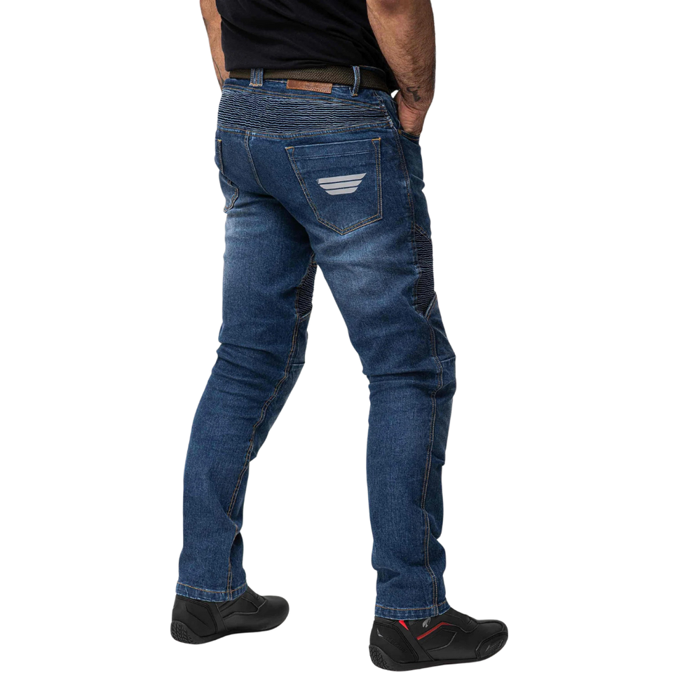Pantalons en denim stretch déchirés à panneaux côtelés de style moto pour hommes, look motard tendance, streetwear décontracté, vente en gros OEM ODM