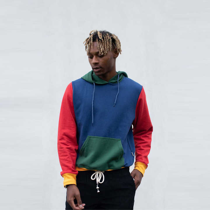 Sweat à capuche multicolore pour hommes, pull audacieux et élégant avec blocage des couleurs, parfait pour le streetwear décontracté et le confort de tous les jours