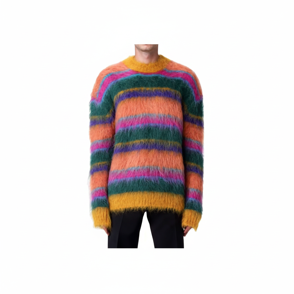 Pull à rayures multicolores pour hommes, vêtements chauds pour l'hiver, pull en tricot doux et moelleux, tenue de mode à la mode, vêtements décontractés confortables