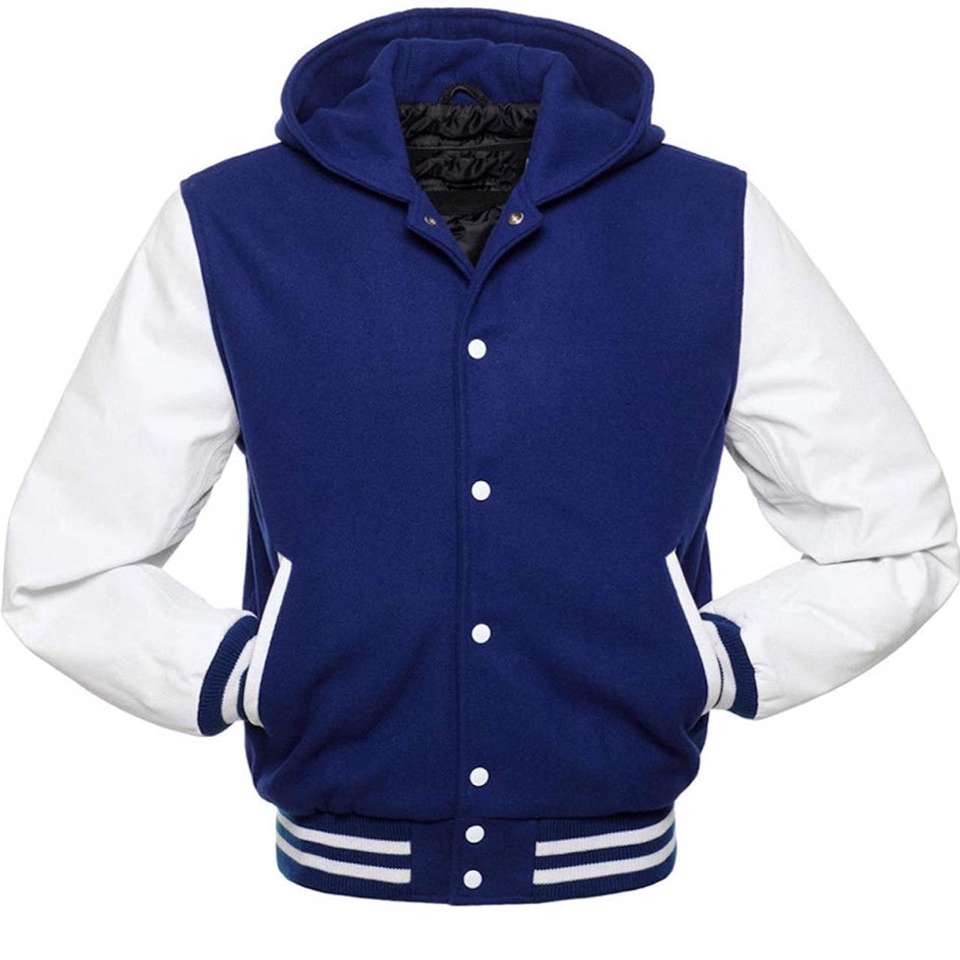 Men Napoleon Empire Wholesale Varsity Letterman Baseball Blue Patches Wool Genuine White Leather Sleeves Jacket