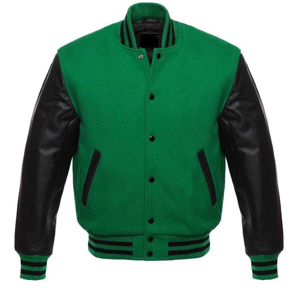 Men Napoleon wholesale Varsity Men Letterman Baseball Black Wool Genuine Black Leather Sleeves Jackets