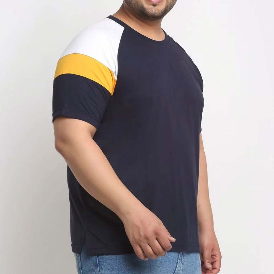 T-shirt personnalisé pour homme, bleu marine, à blocs de couleur, imprimé, 220 g/m², 100 % coton, manches courtes, col rond, décontracté, écologique, respirant, taille plus