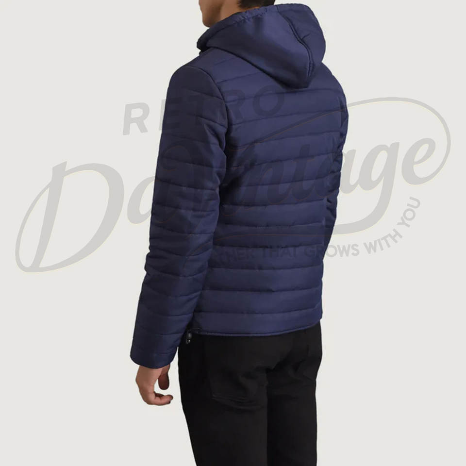 Veste d'hiver pour homme en bleu marine, épaisse et chaude, avec capuche, parka matelassée coupe-vent, veste à bulles pour l'extérieur