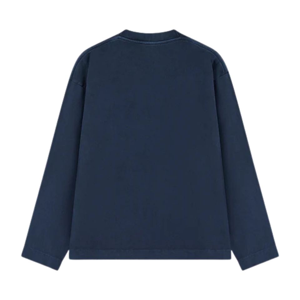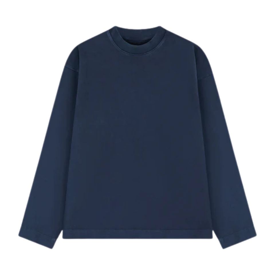 T-shirt à manches longues pour homme, bleu marine, col rond, coton, décontracté, streetwear, tendance, look vintage doux