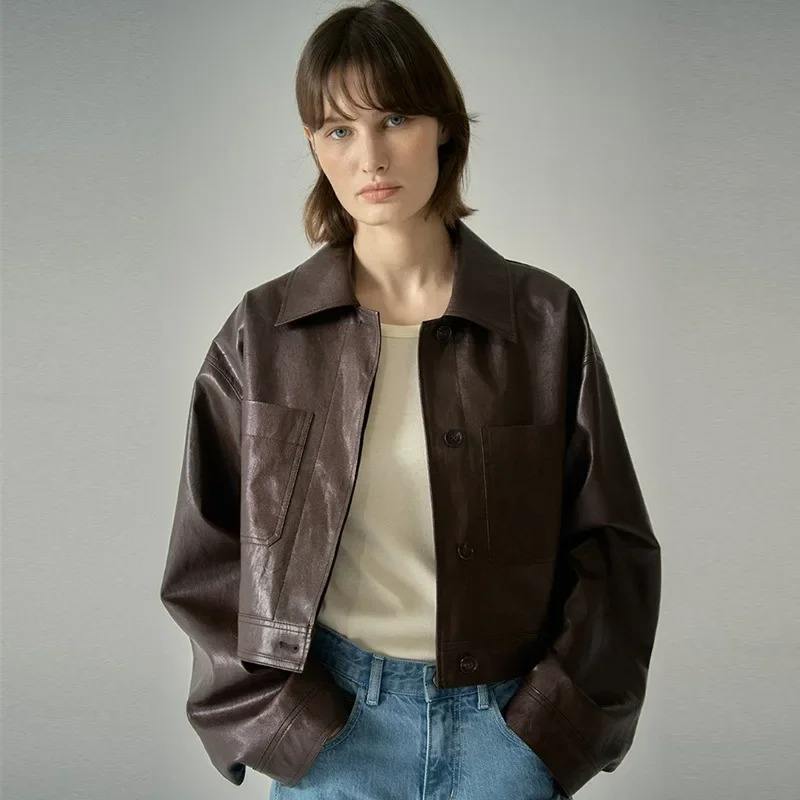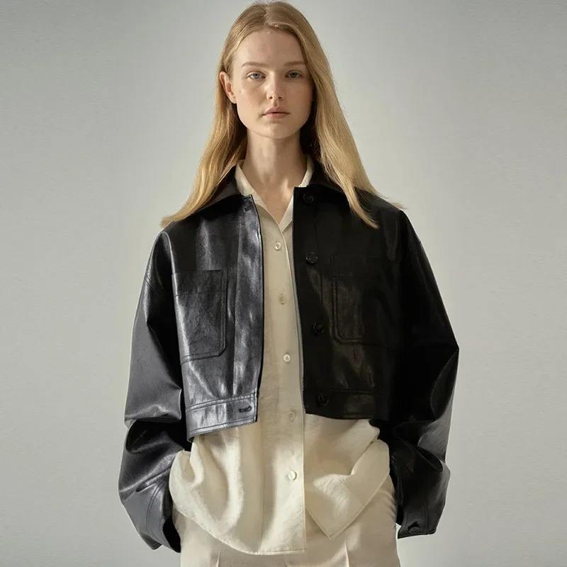 Veste de rue haute en cuir véritable, imperméable et écologique, style rétro, couleur unie, nouveau modèle d'hiver pour hommes
