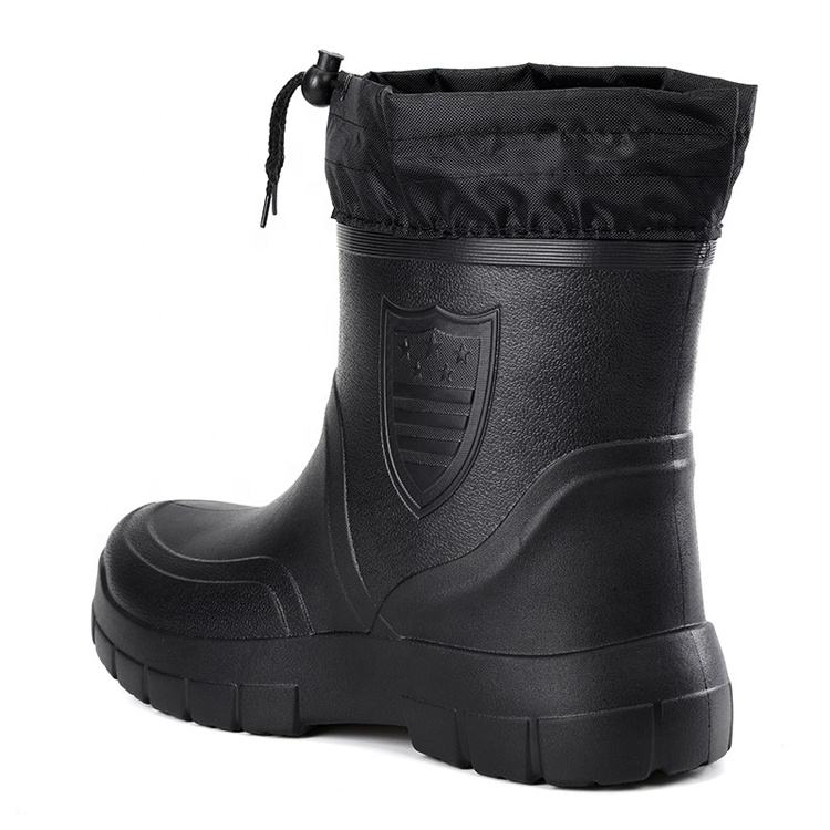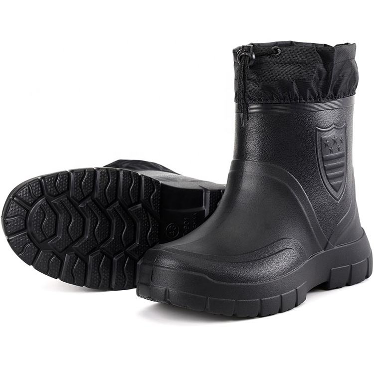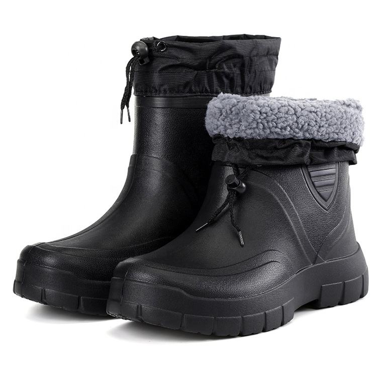 Chaussures de travail antidérapantes et anti-huile pour hommes, bottes de pluie légères en EVA, bottes de pluie courtes chaudes en caoutchouc noir et blanc pour l'hiver avec chaussettes