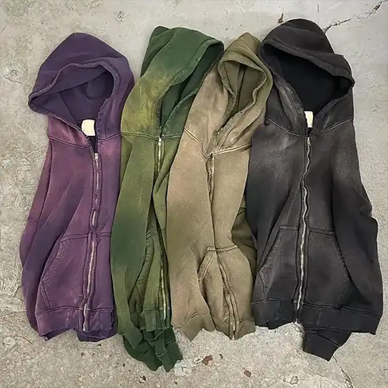 Men Oversized Acid Wash Hoodie Vintage Heavyweight Fleece Sweatshirt Custom Logo Streetwear Fashion