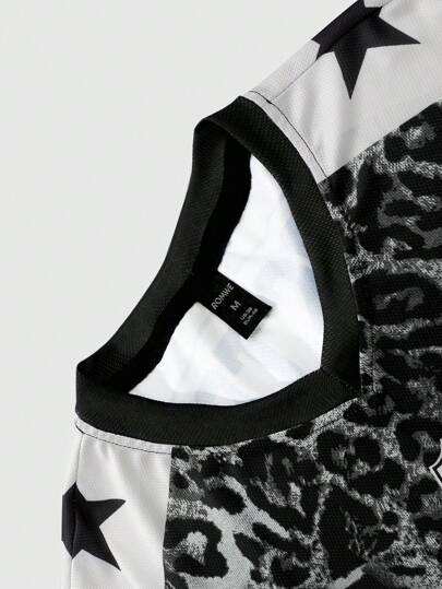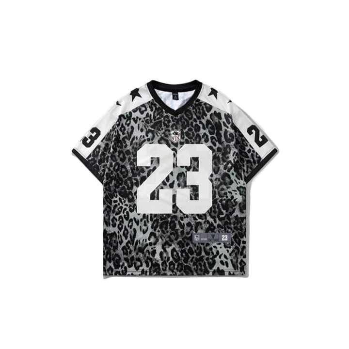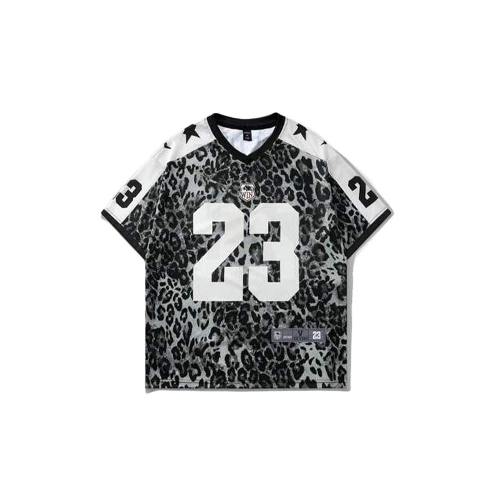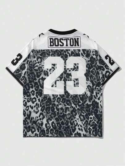 Maillot de football américain surdimensionné personnalisé à motif léopard pour homme, en maille respirante, col en V, streetwear athlétique, en polyester, avec numéro