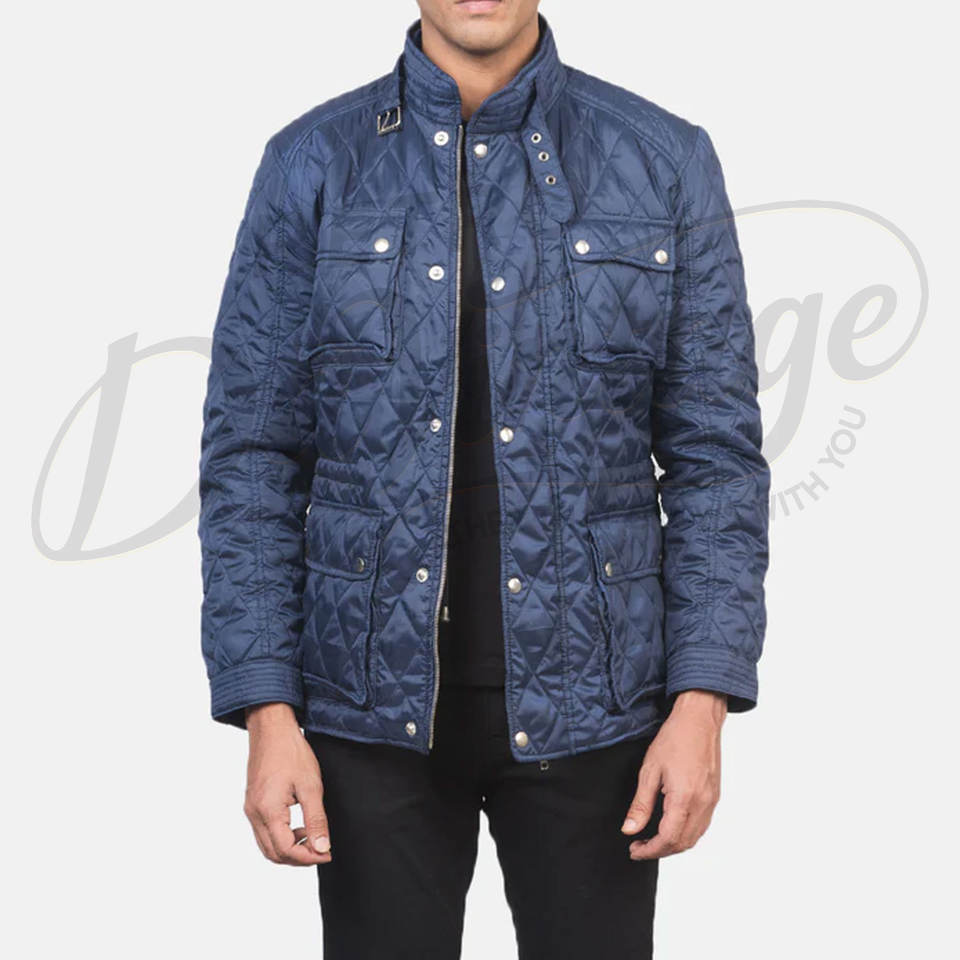 Veste matelassée bleu marine de qualité supérieure pour homme, coupe ajustée, multi-poches, rembourrée, classique, décontractée, fermeture éclair, manteau d'hiver