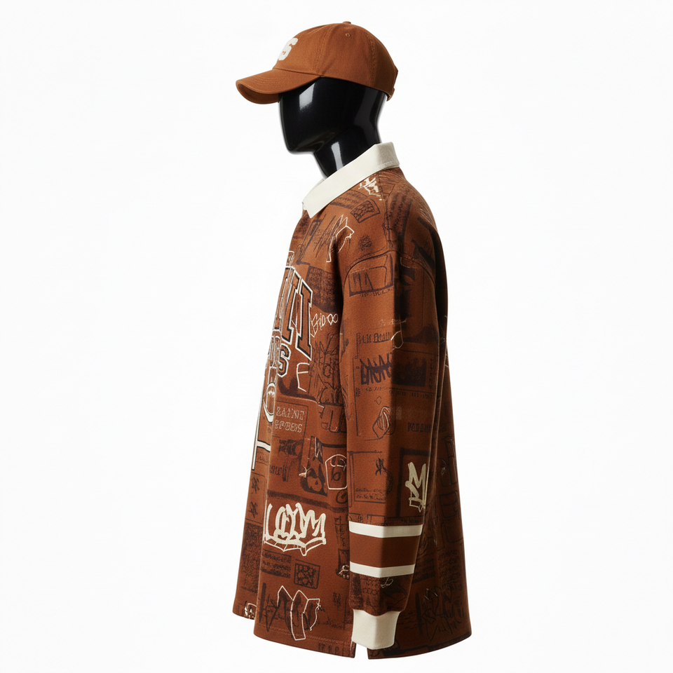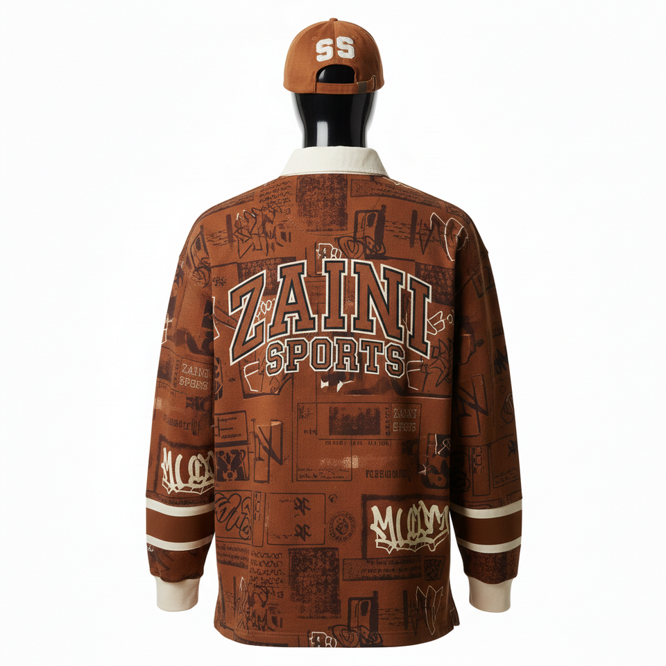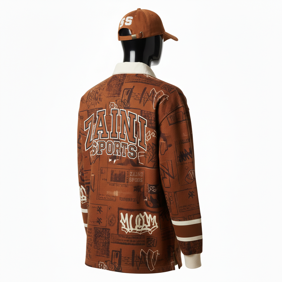 Maillot de rugby premium pour homme, jersey en coton lourd 280 GSM, marron, panneaux coupés et cousus, impression par sublimation, logo personnalisé, évacuation de l'humidité