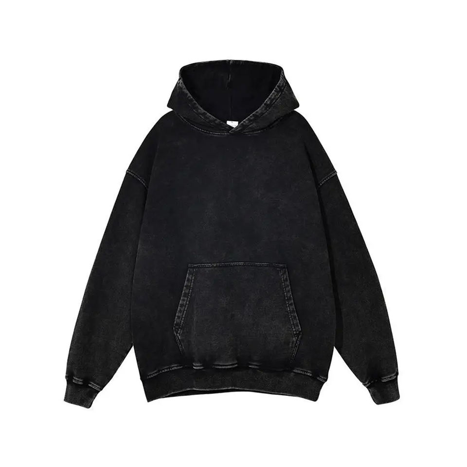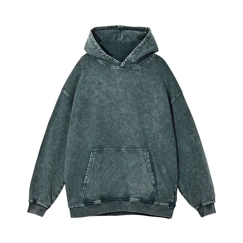 Sweat à capuche décontracté en molleton uni délavé à l'acide pour homme, mélange de coton, hiver