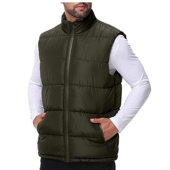 Men Puffer Vest Outerwear Puffy Sleeveless Jacket Bubble Zipper Winter Warm Water-Resistant Ultra Thin Warm Lightweight Down