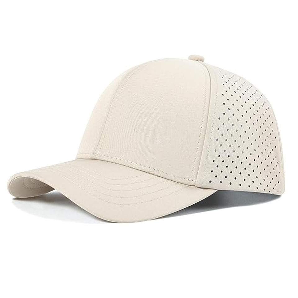 Casquette de baseball pour homme à séchage rapide, maille découpée au laser, respirante, chapeau de sport à visière incurvée, casquette ajustable à fermeture snapback, personnalisable pour l'extérieur