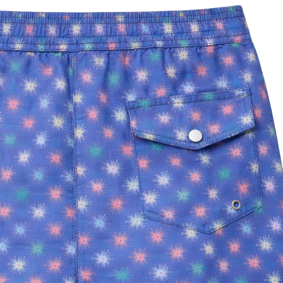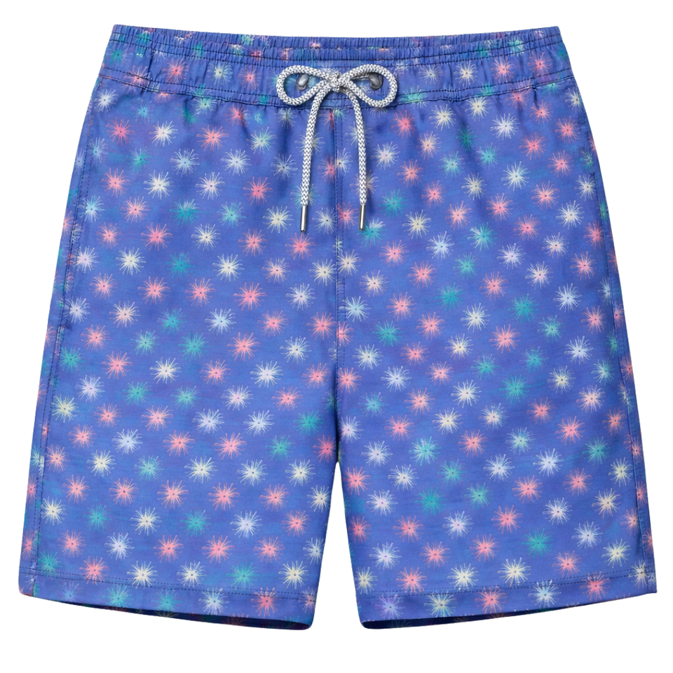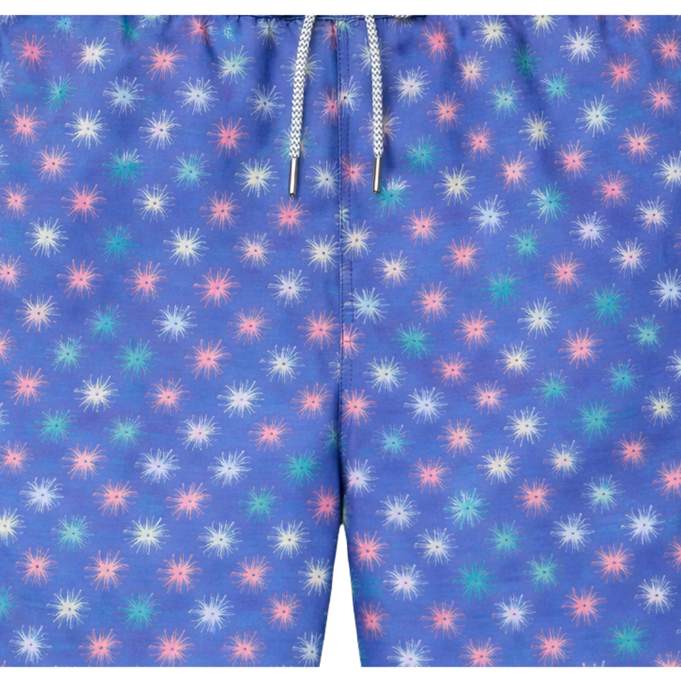 Men Recycled Swim Shorts Multicolor Starfish Print Quick Dry Beach Swim Trunks with Elastic Waist Drawstring Pockets