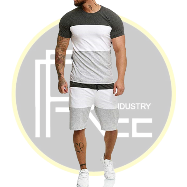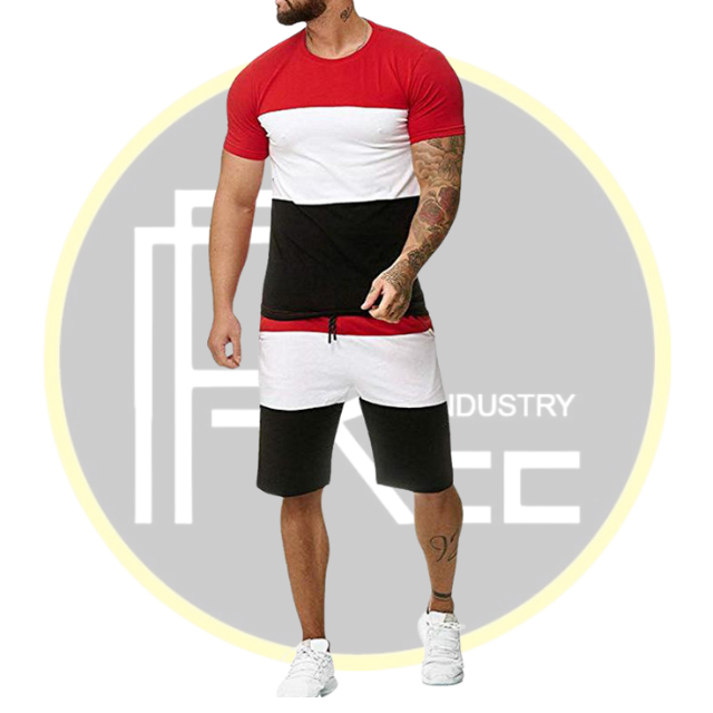 Men Red White Black Colorblock T-Shirt & Shorts Set Bold Summer Casual Outfit
