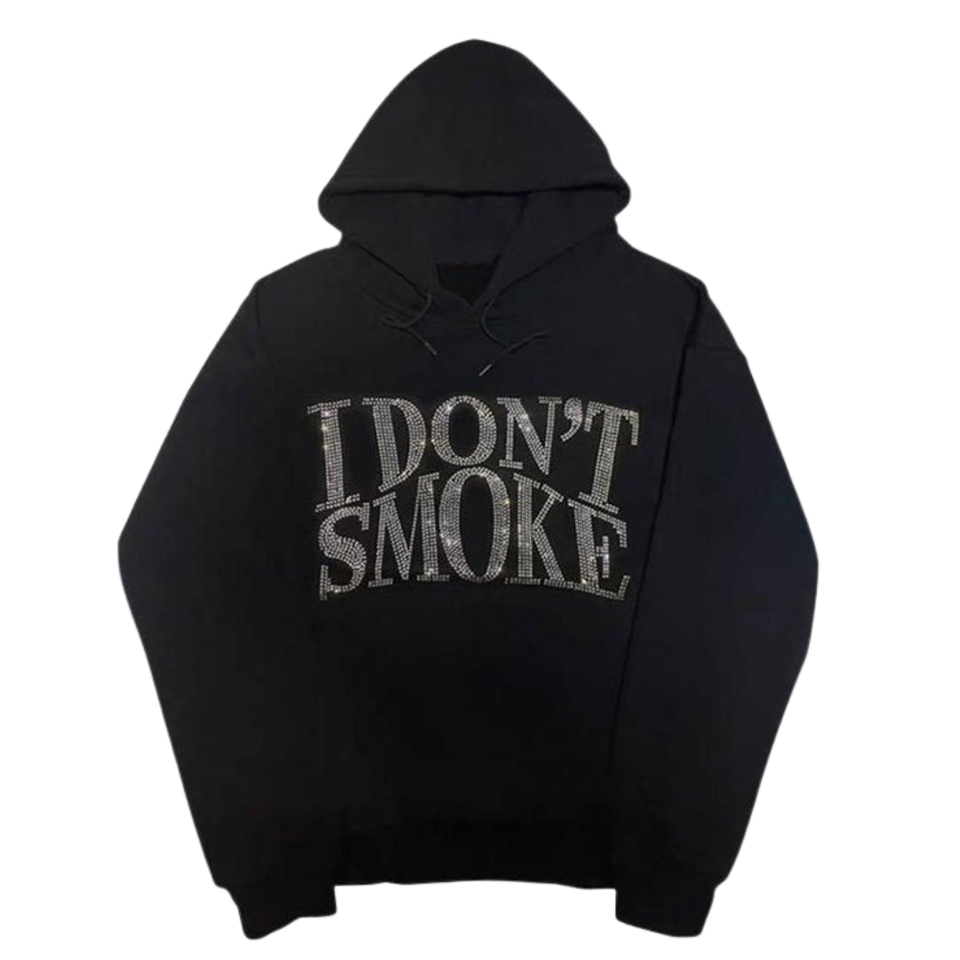 Sweat-shirt à capuche noir pour homme avec texte en strass, style streetwear, en molleton de coton, logo personnalisé, vente en gros