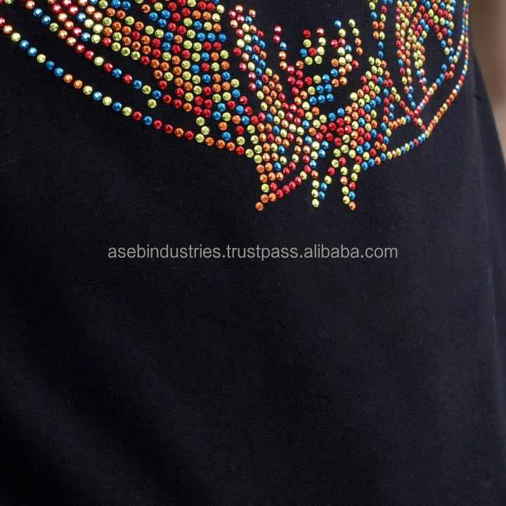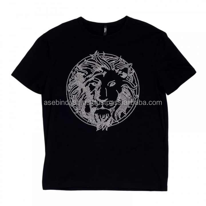 T-shirt de transfert de strass pour hommes T-shirts chauds personnalisés en cristal multicolore 220 GSM pour la saison d'été