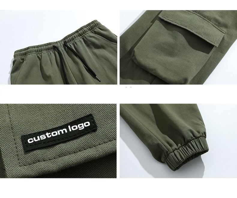 Pantalon de jogging cargo pour homme, vert, respirant, séchage rapide, coupe-vent, écologique, fermeture à cordon, 6 poches, jambe large