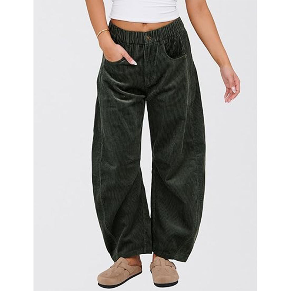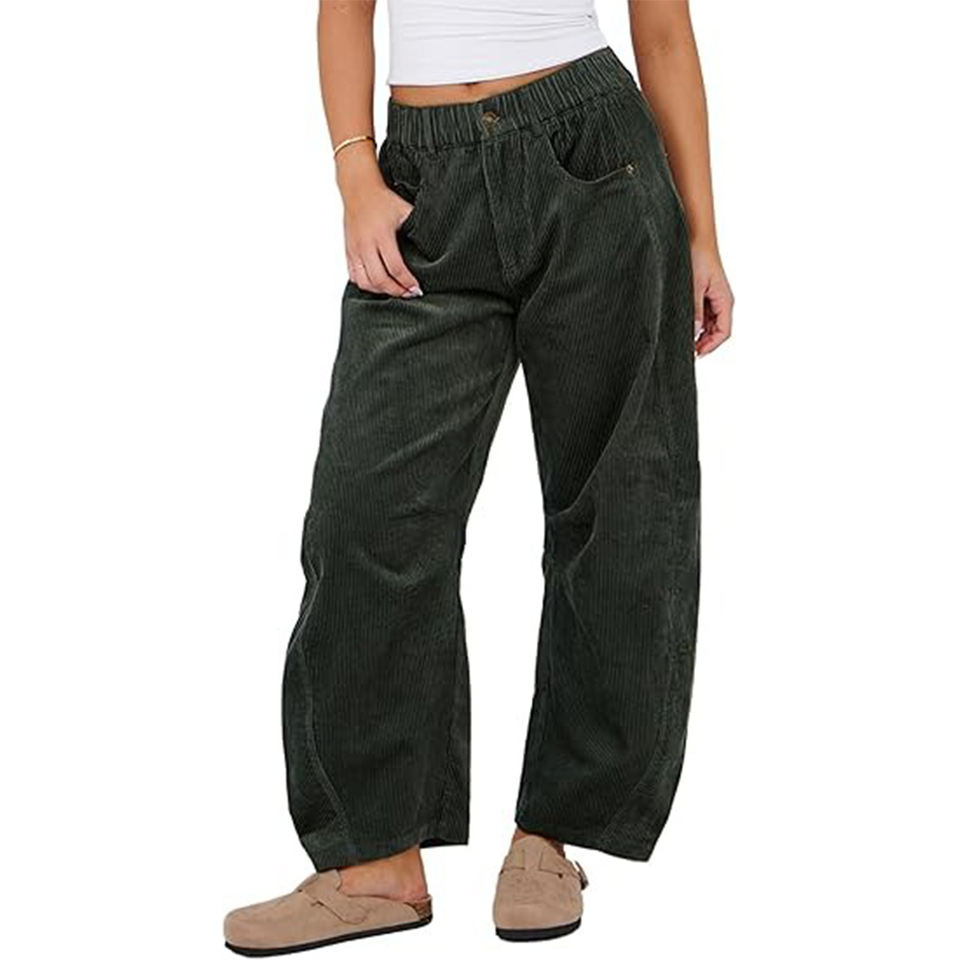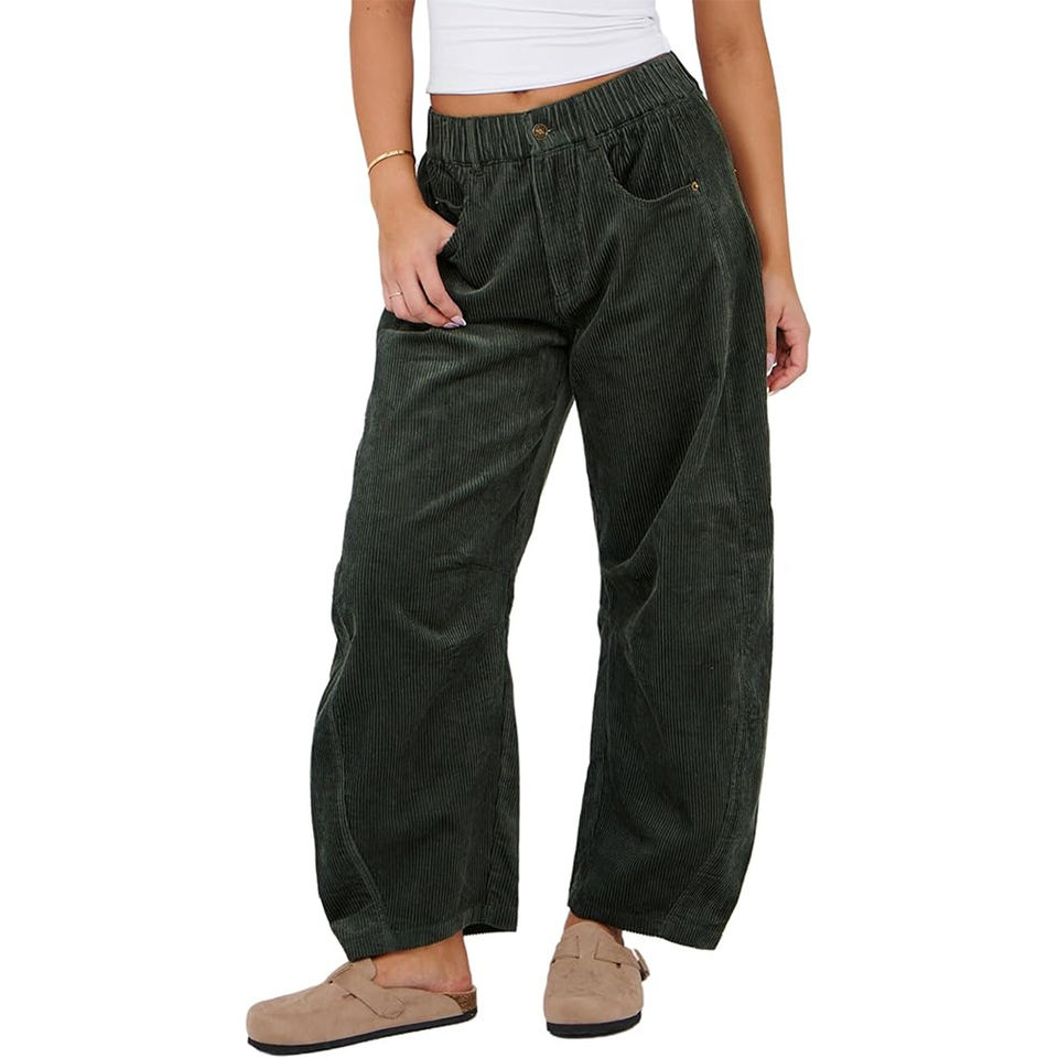 Product Name:Mid-Rise Elastic Waist Cord Pants