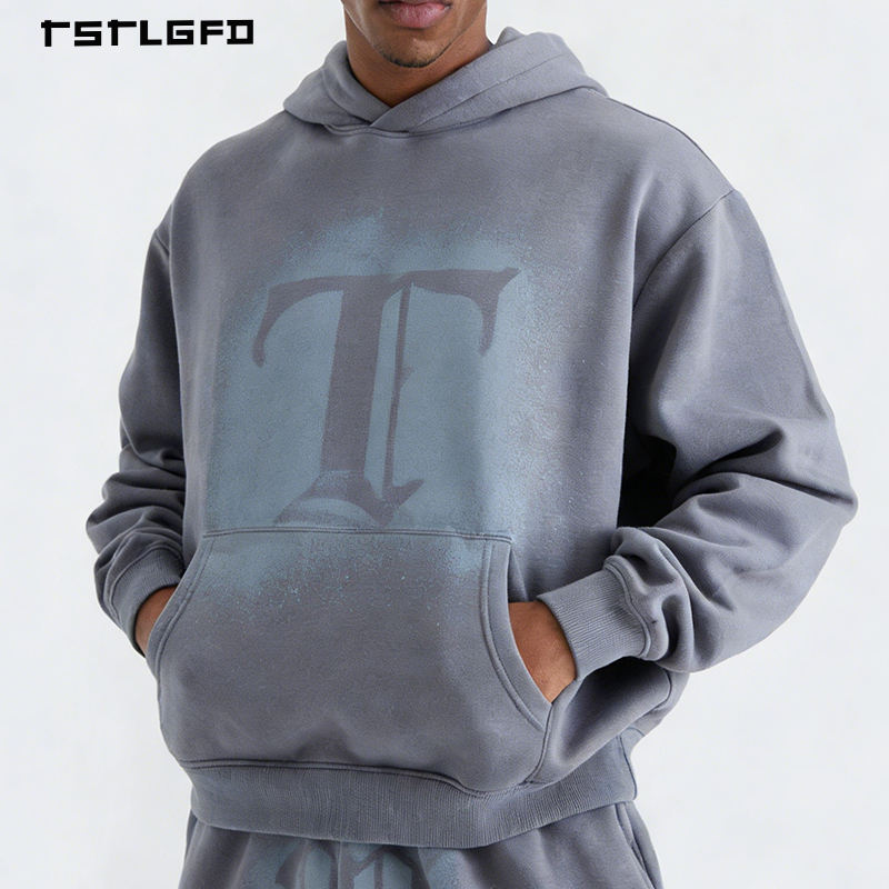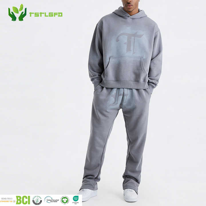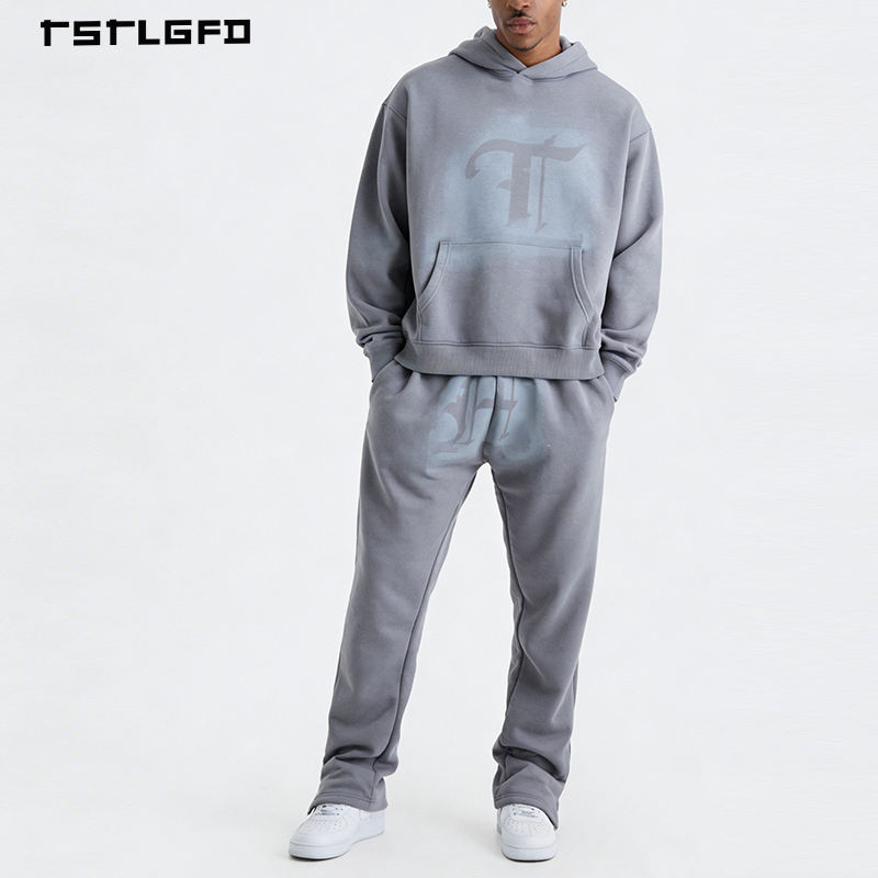 Ensemble 2 pièces pour homme : sweat à capuche et pantalon de survêtement imprimé, orné de strass, délavé à l'acide, en coton biologique, écologique, toucher doux, décontracté