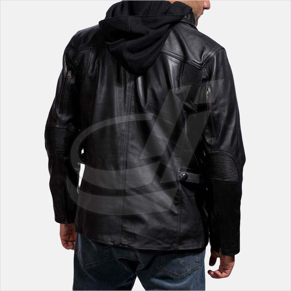 Veste Safari en cuir de mouton pour hommes, avec poches avant, décoration à capuche personnalisée, veste en cuir matelassé
