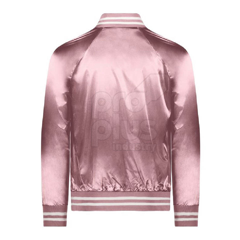 Veste en satin à col montant avec logo sur le devant, 100% polyester, écologique, légère, finition lisse et brillante, veste décontractée pour homme