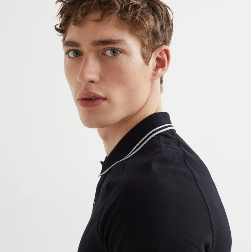 Polo à manches courtes pour hommes poitrine trois rayures couleur assortie mode collocation polo à manches courtes pour hommes