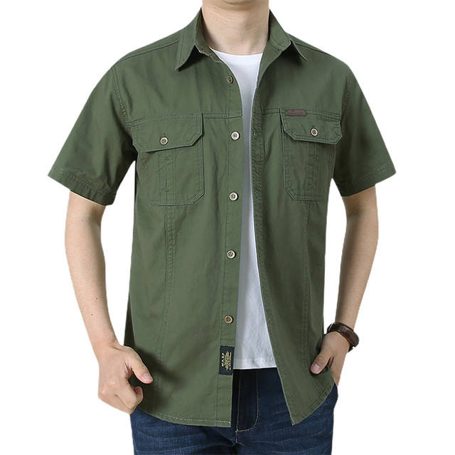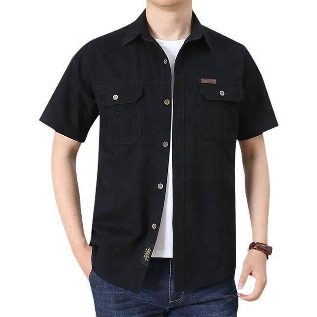 Men Short Sleeve Solid Color Button up Collar Shirt 100% Cotton Oxford Casual Shirt