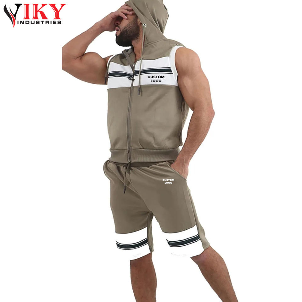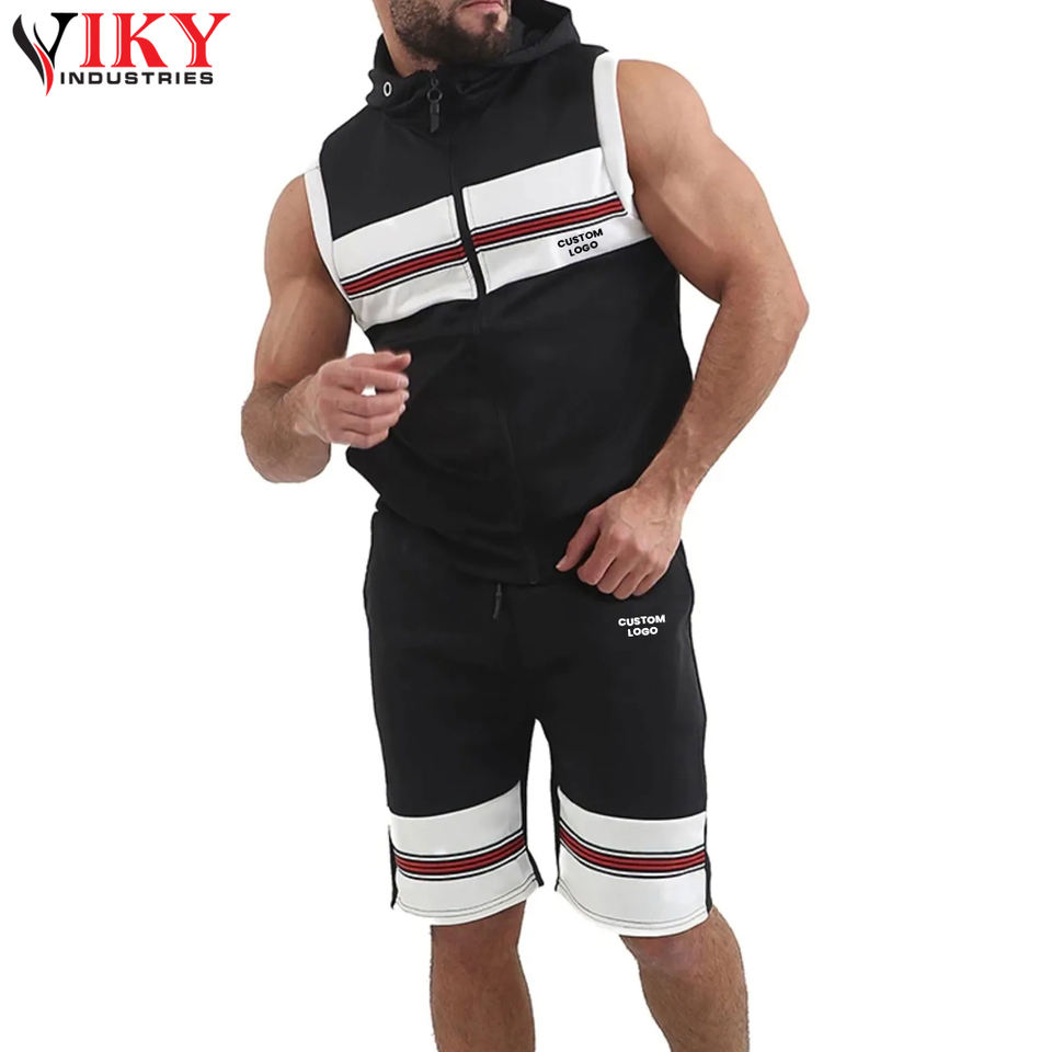 Men Sleeveless Hoodie With Shorts Custom Made Logo and Designs High Quality Shorts Sets OEM Service 2 Pieces Sets for Gym