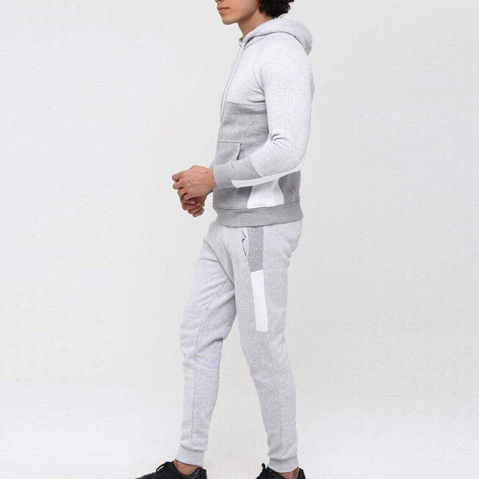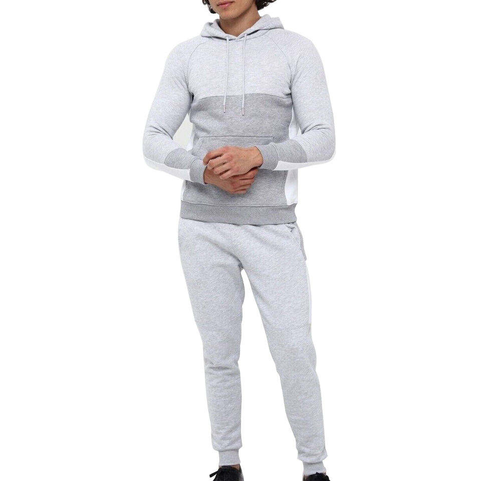 Ensemble de survêtement d'hiver pour homme, doux, avec empiècements de couleur, en molleton 100% coton, comprenant un sweat à capuche et un pantalon de jogging slim, tenue confortable