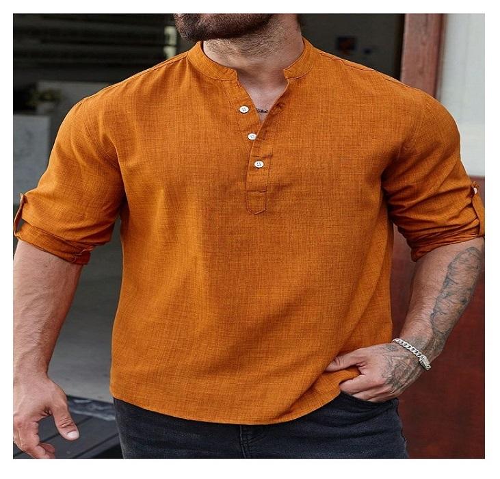 Ensemble chemise et pantalon pour homme, couleur unie, col mandarin, manches longues, vêtements décontractés, légers, respirants, style estival, tenue tendance