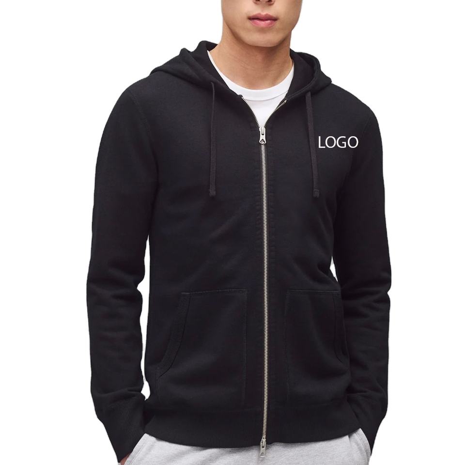 Men Solid Color Zip Through Hoodie Featuring Long Sleeves & Refined Fabric Surface Offering Comfortable Coverage Minimal Design